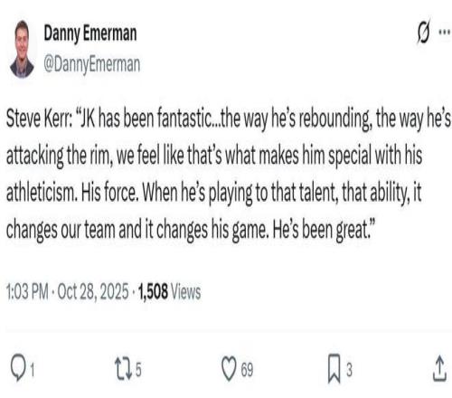 面对库明加这样的表现,一向对其十分严苛的科尔也在赛后不禁称赞道:“库明加太棒了!无论是篮板球,还是对于内线的冲击,他都凭借运动天赋和力量所展现出独特之处,这样的表现不仅提升了他的比赛水准,也改变了我们的球队。”