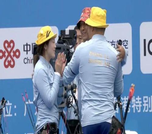 十五运会射箭复合弓混合团体铜牌赛中,上海运动员姚瑶/张子雷154比152战胜广西组合韦方瑶/韦忠庭,摘得一枚铜牌!