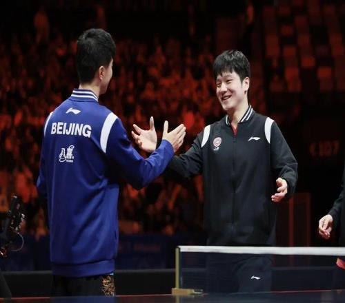 马龙和樊振东两位国乒老队员友好互动