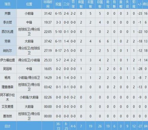 新疆队数据如下: