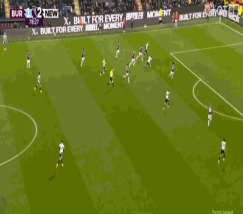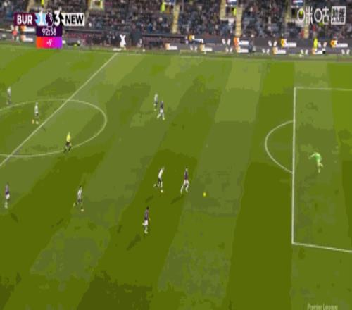 第90+2分钟,伯恩利后场失误,吉马良斯吊射破门,纽卡3-1